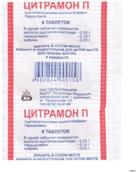 Цитрамон П, таблетки 6 шт: Инструкция по применению